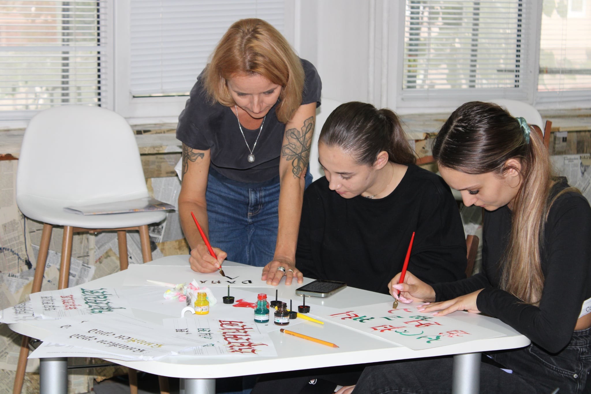 Водещи на ателието бяха художници и преподаватели по изящни изкуства от творческо студио „Дарита“. Захарина Петрова и Павлин Проданов запознаха децата с тънкостите на красивото писане и историята на калиграфията.